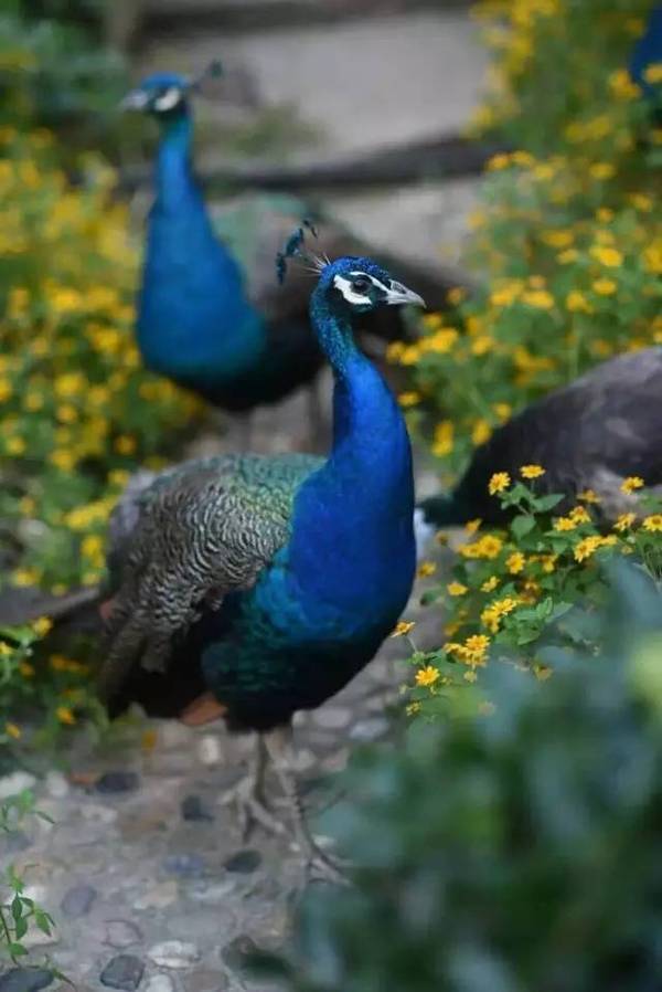 就是兩只在上悠閑散步的孔雀。