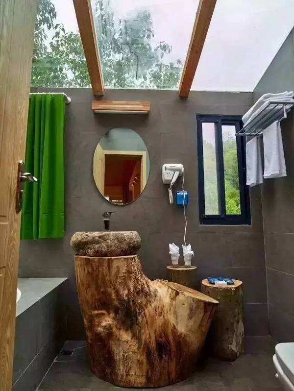 玻璃罩頂的“露天”浴房,